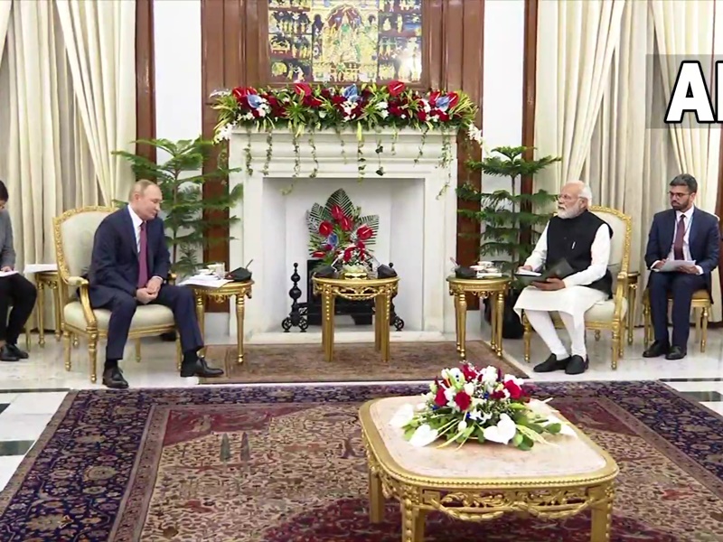 आज रुसी राष्ट्रपति व्लादिमिर पुतिन (Vladimir Putin) भारत के दौरे पर नई दिल्ली पहुंचे। दिल्ली के हैदराबाद हाउस में उनकी प्रधानमंत्री नरेन्द्र मोदी से मुलाकात हुई और उन्होंने 21वें वार्षिक भारत-रूस शिखर सम्मेलन में हिस्सा लिया। उम्मीद है कि प्रधानमंत्री मोदी और पुतिन की मुलाकात में दोनों देशों के बीच कई अहम समझौतों पर सहमति बनेगी। राष्ट्रपति पुतिन इस मुलाकात के कुछ ही घंटों के बाद आज ही वापस रुस लौट जाएंगे। विदेश मंत्रालय ने बताया कि प्रधानमंत्री मोदी और राष्ट्रपति पुतिन शाम साढ़े पांच बजे शिखर वार्ता शुरू करेंगे और रूसी नेता रात साढ़े नौ बजे दिल्ली से उड़ान भरेंगे। समझौतों के बिन्दुओं पर चर्चा के लिए रूस के रक्षा मंत्री सर्गेई शोइगुए पहले ही भारत पहुंच चुके हैं। सोमवार को उन्होंने रक्षा मंत्री राजनाथ सिंह के साथ द्विपक्षीय मुलाकात की। आपको बता दें कि रूस के राष्ट्रपति पुतिन बेहद कम यात्राएं करते हैं। ऐसे में निश्चित तौर पर पुतिन की यह यात्रा मात्र औपचारिकता नहीं है।